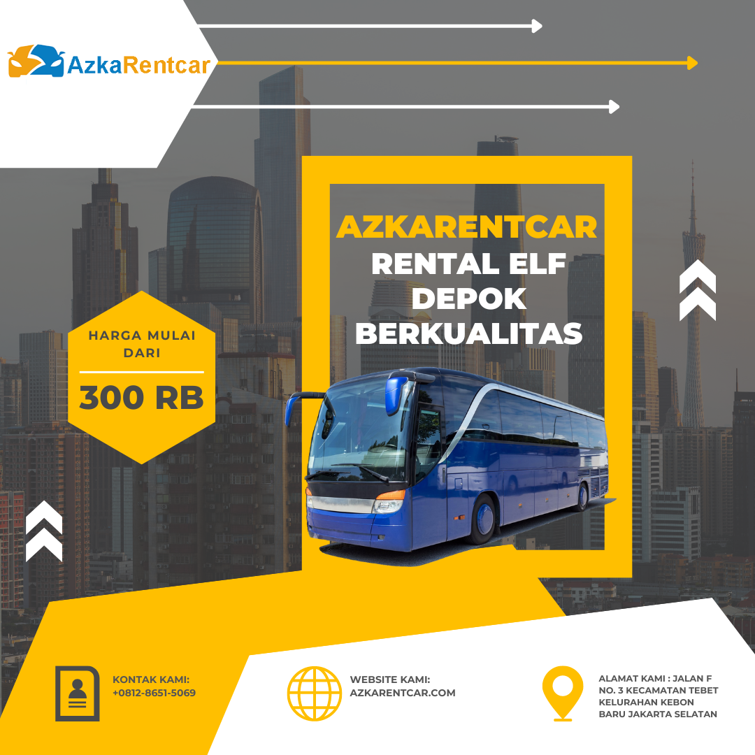 Azkarentcar Rental Elf Depok adalah perusahaan layanan sewa mobil yang berlokasi di Depok. Perusahaan ini menawarkan berbagai pilihan sewa mobil, mulai dari mobil keluarga sampai mobil mewah. Mereka menyediakan layanan pengiriman gratis ke bandara dan stasiun kereta api dan berbagai lokasi lainnya di Depok. Perusahaan ini juga menyediakan layanan antar-jemput.