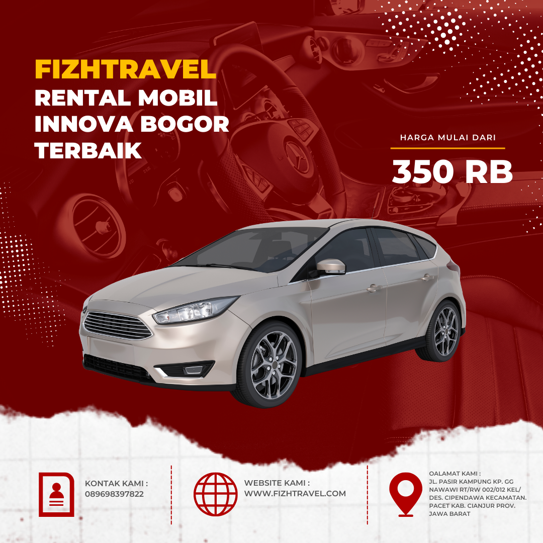 Hubungi Fizhtravel di https://fizhtravel.com untuk informasi lebih lanjut tentang rental mobil Innova Bogor terbaik dan pemesanan.
